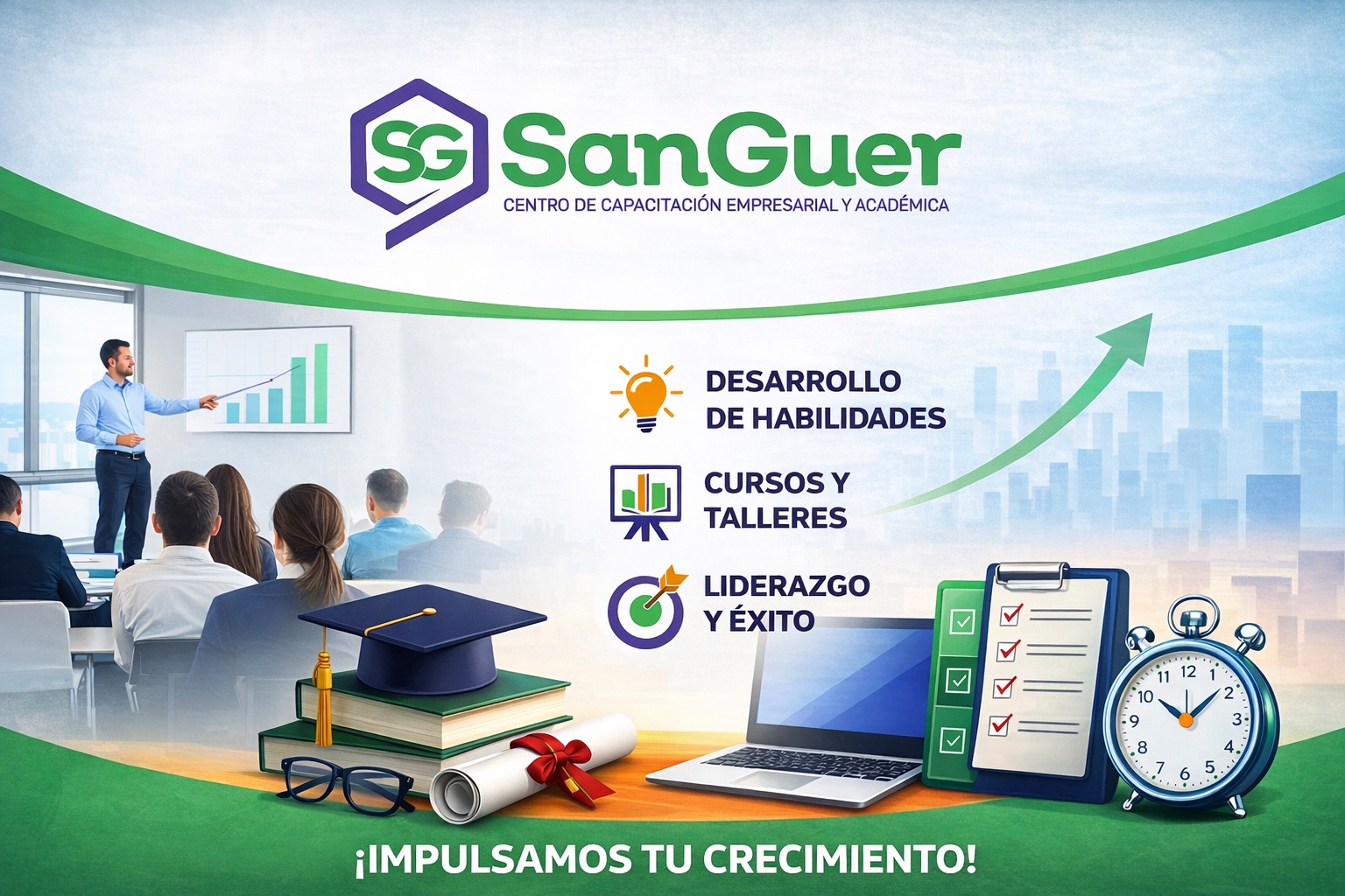Sé parte de Sanguer Cía. Ltda., una empresa dedicada a la asesoría, consultoría y capacitación empresarial y académica, orientada al desarrollo profesional, institucional y humano.